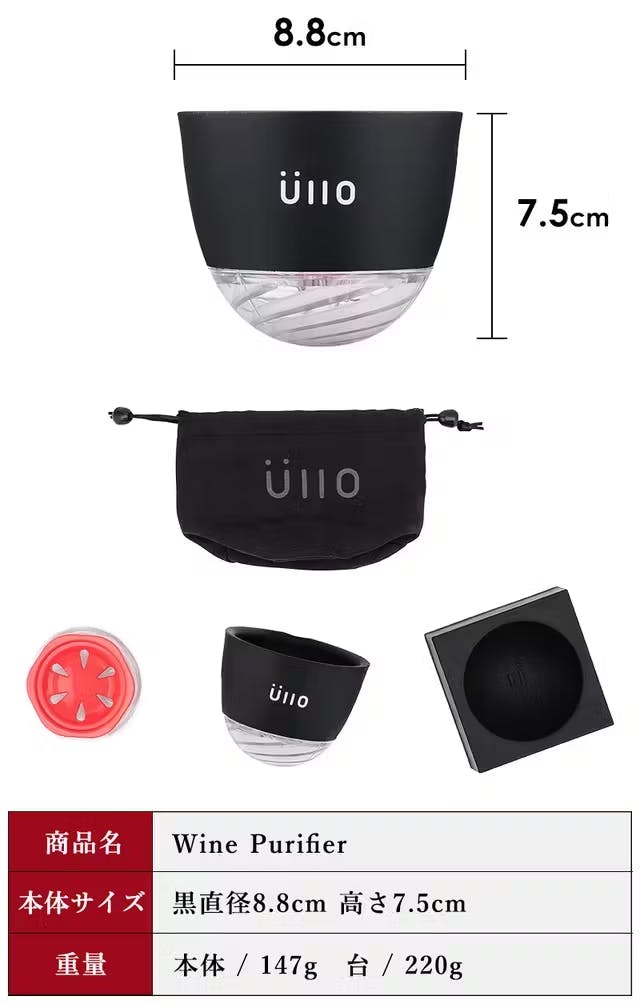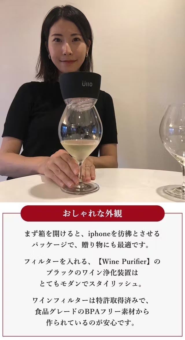 【Wine Purifier】はグラスに置いてワインを注ぐだけで、ワインの亜硫酸を取り除く画期的なアイテム。