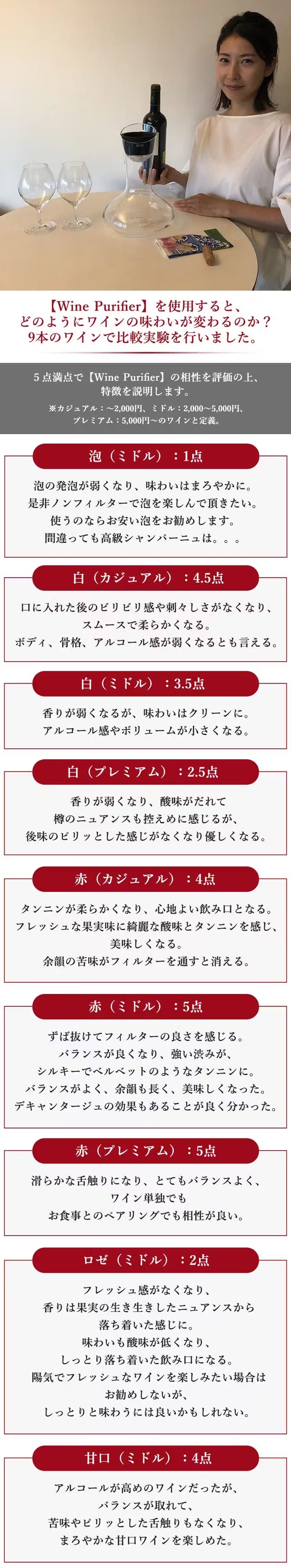 ワインが持つ本来の味を引き出し、いつものワインの味わいもワンランクアップ。