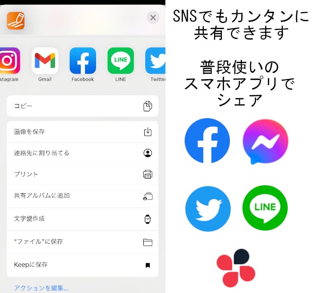 ※共有出来るアプリはお使いのスマホ環境に依存します。