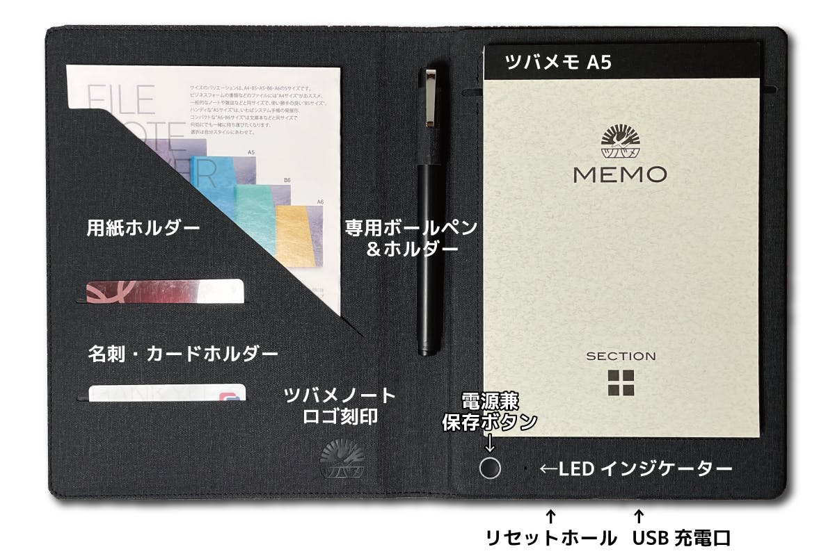 「ツバメノート株式会社」の「ツバメモ A5」が付属します。