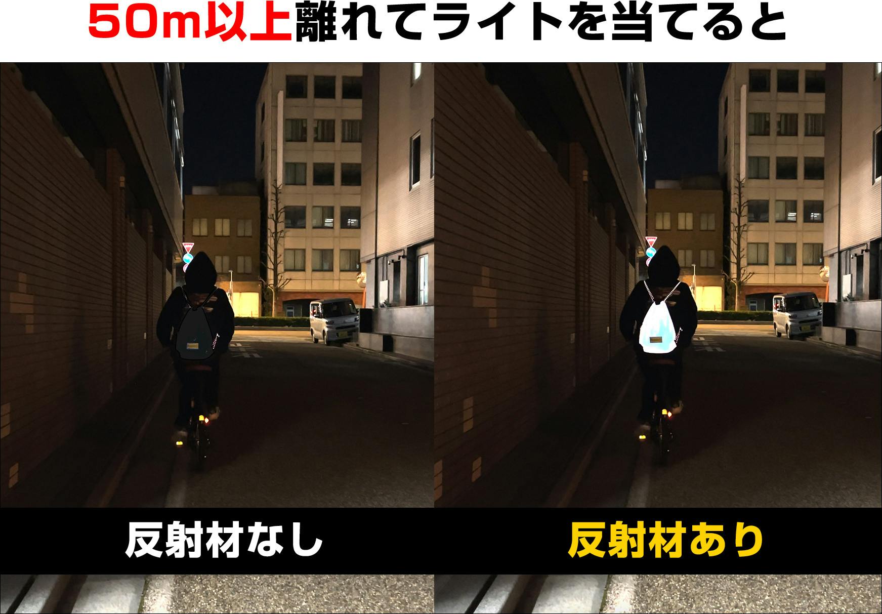 *再帰性反射材(リフレクター)は夜間の視認性向上に役立ちますが、安全を保証するものではございません。