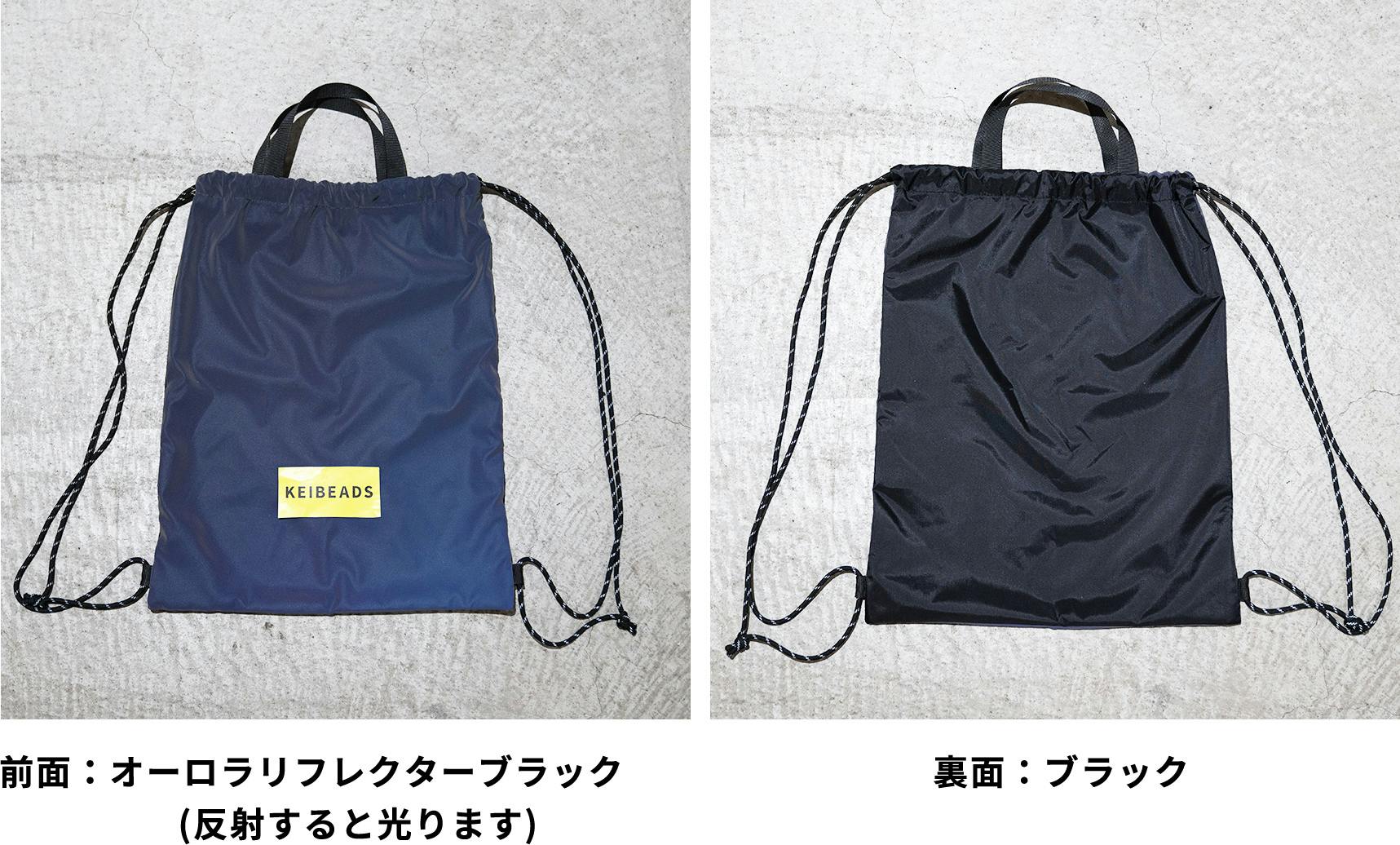 特許技術のオーロラ反射材を使い、視認性バツグンのナップサック。警備会社が、人々の安全を第一に考えたアイテム!