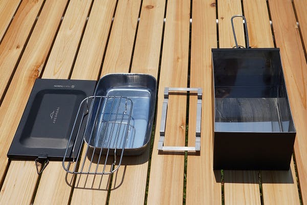 アウトドアを知り尽くした職人が家庭でもアウトドアでも気軽に燻製ができる機能面デザイン。