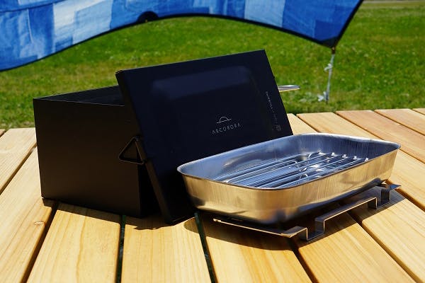 ⑤ 飽きのこない洗練されたビジュアル使い勝手の良い王道ステンレスシルバーのデザインと、マットで大人な雰囲気のデザインどちらもお好みで選べるのもうれしいポイント!ARCORORAのロゴマークがグッとクオリティーをあげてくれています専用の入れ物にもこだわり、一点もっていると活躍すること間違いなし!!食品を設置して弱火で放置するだけなので、キャンプ初心者の私でも簡単に美味しい燻製料理ができます!