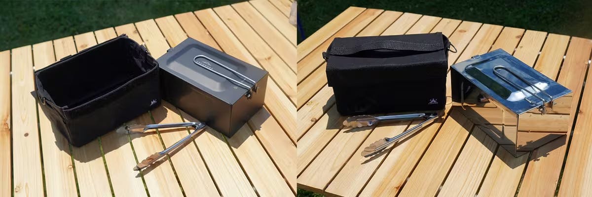 燻製器(スモーカー)と言えば、丸い鍋型やスチール製やダンボール製の大きな箱が主流ですが、「BOX」は片手で持てるメスティンサイズの上に形状もシャープで特にブラックカラーは一目見た瞬間から惹かれるカタチです。ブランドの被りを避けたい方、道具にこだわりを持つ方、あえてマイナーな道具を使うのが好きな方、まわりとは「ちょっと」違ったアイテムを持ちたい方にもお勧めです。