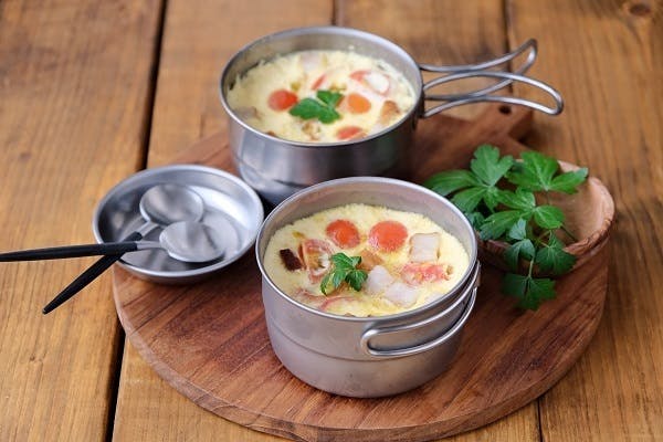 調理時間:20分①ベーコンは1㎝の角切り、ミニトマトとモッツアレラチーズは1/4に切る。②ボウルに卵を割り入れて、泡立てないように菜箸でほぐす。牛乳・水を追加し、さらにほぐし混ぜる。③②の卵液をザルでこしたら、コンソメを入れて混ぜ合わせる。④シェラカップに①の具材と、③の卵液を流し入れる。⑤アルミホイルをかぶせ、沸騰させたお湯張った蒸し器で8分蒸す。ポイント:卵液を濾すことで、なめらかな食感に仕上がります。牛乳を入れることでクリーミーで洋風の具材とも相性が良い茶碗蒸しに仕上がります。