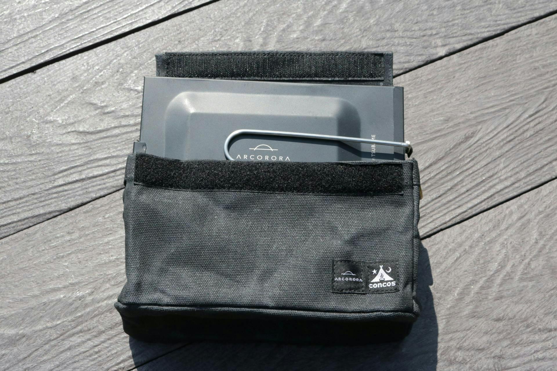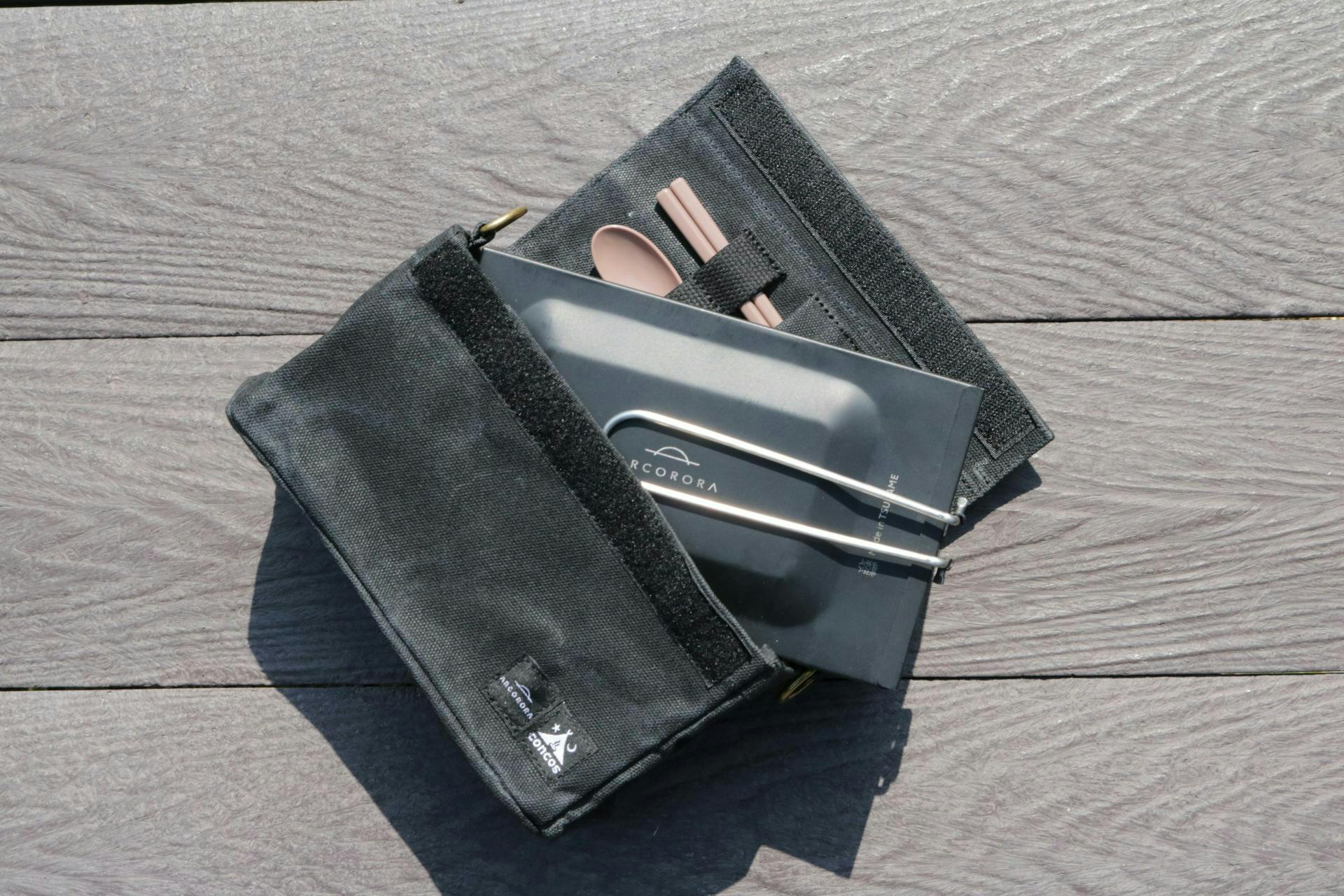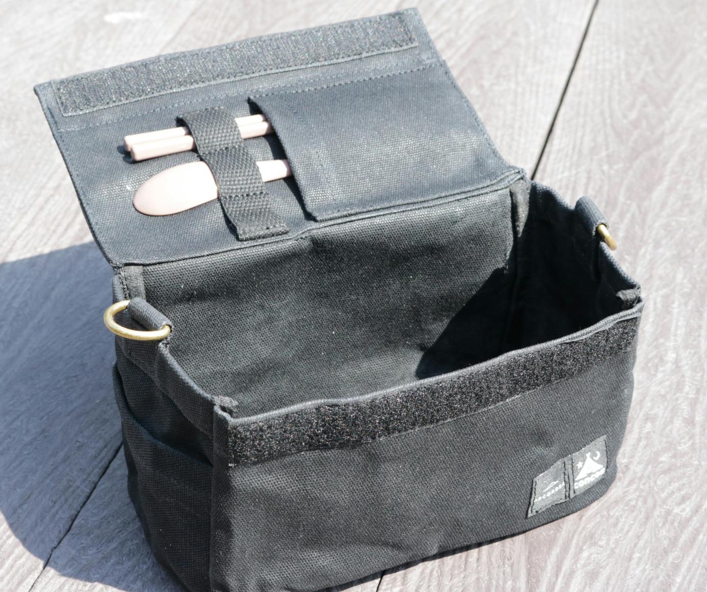 ⑥専用のケースにもこだわり専用のケースにもこだわりがぎゅっと込められています。こちらのケースは大阪発のアウトドアガレージブランド「concos」のもの。「BOX」のサイズに合わせ横向きにすっぽり入る特注品ですが、フォークやナイフを収納できるポケットがついており、戦闘飯盒やカップ麺なども収納可能。両サイドDカンに紐を通せばお弁当用ケースに、と普段使いもできる優れものなんです!素材は、綿100%の綿帆布にパラフィン加工を施されているので、撥水効果もばっちり!使用後はしっかり乾燥させ、汚れはしめった布でふきとるだけでOKなので、お手入れも楽々です。一点持っていると今後も大活躍してくれること間違いなし!たくさん使って、味を出していく工程も楽しみですね!