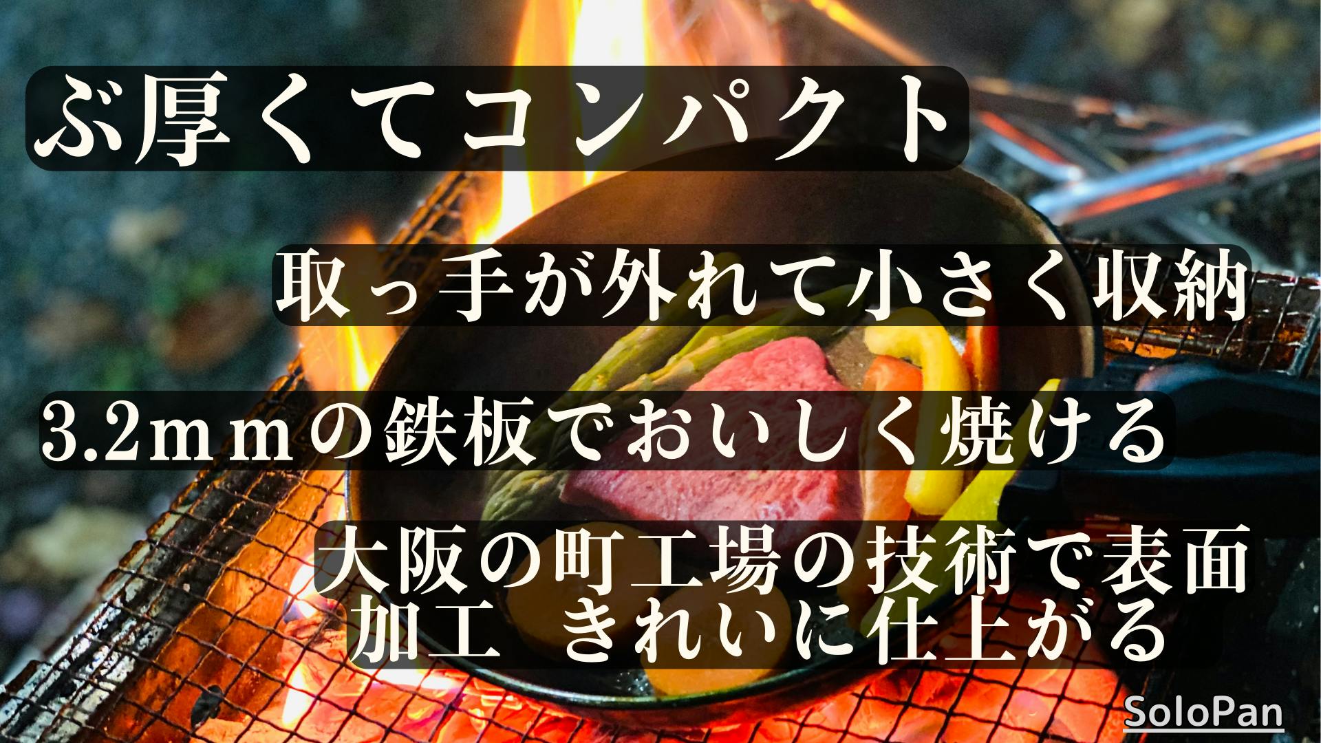 極上のキャンプスパイス。今回はコンパクト且分厚い鉄板のフライパンをセットにしました!充実のキャンプライフを!