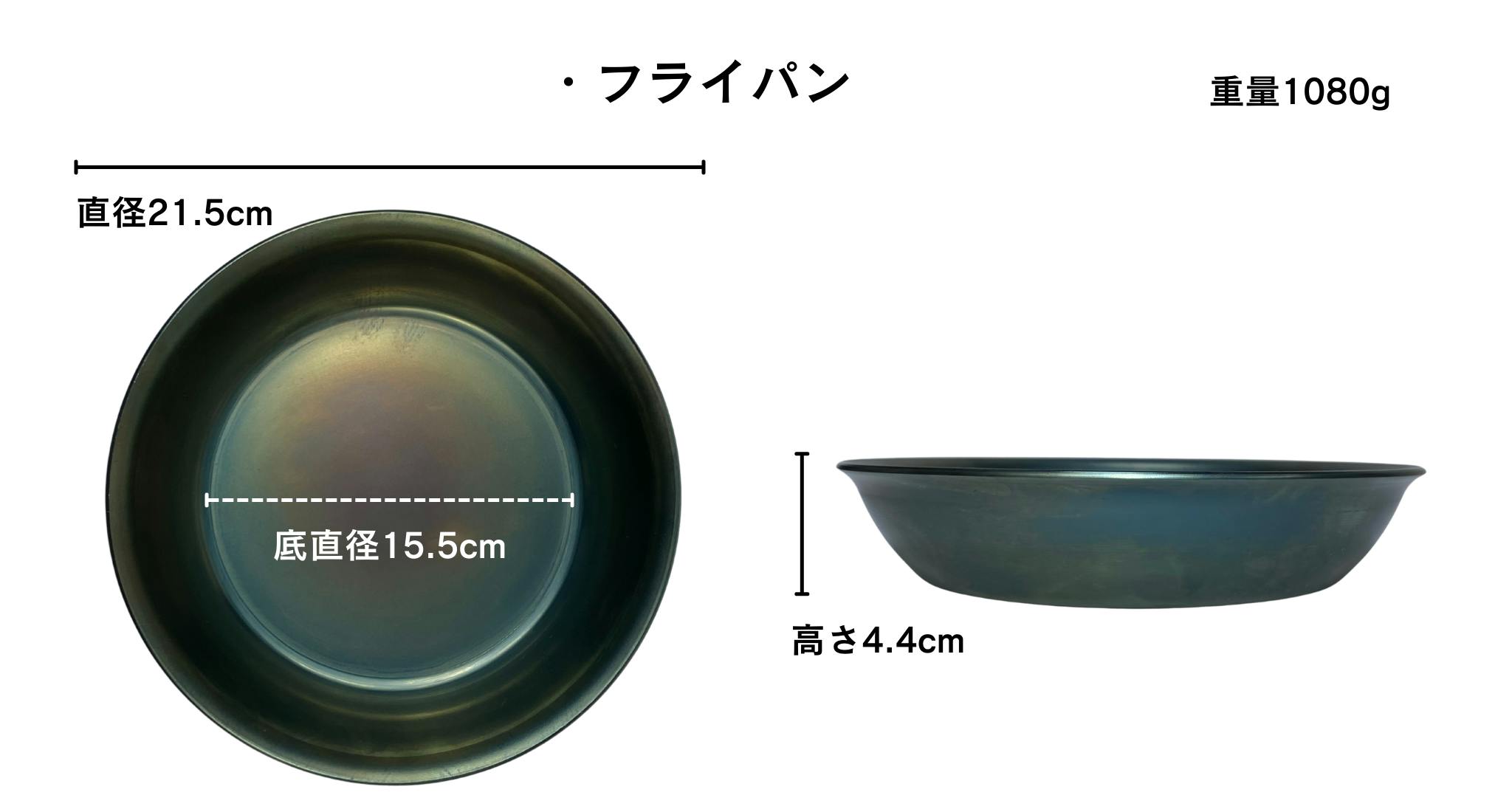一般的なフライパンのサイズは24~30cmです。小さな自動車にキャンプ道具を積んでいて、私はこの大きさに不便を感じていました。だから一回り小さい21.5cmの直径のサイズにしました。