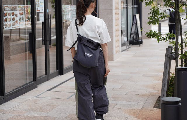 警備会社と共に考えた「反射材付きショルダーバッグ」。特許技術のオーロラ反射材仕様でオーロラに反射します!