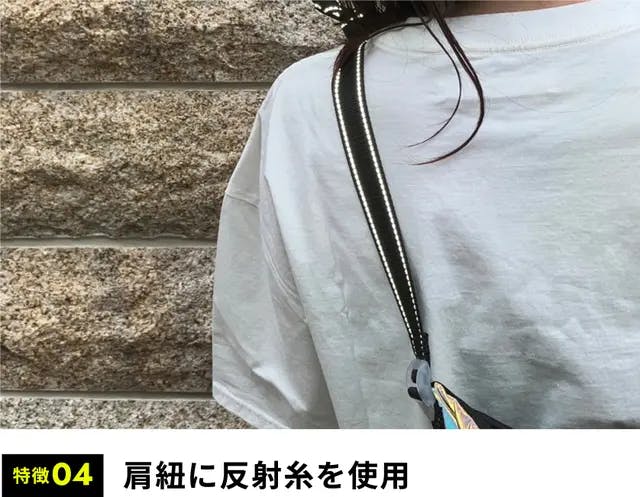 肩紐にも反射材を使用しているので、前後からの視認性も抜群です!