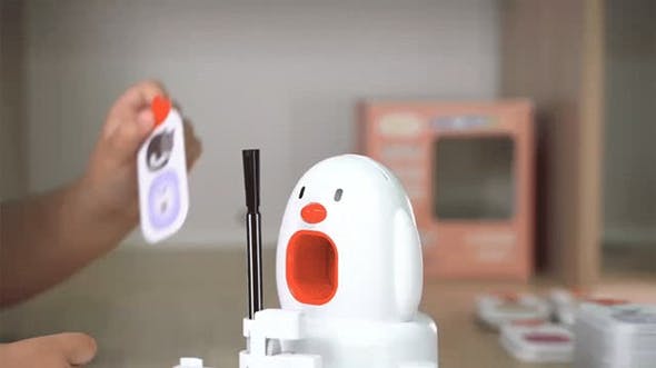 - ロボットがご挨拶。子供の愛着がもつ可愛らしいニワトリのデザインで英語への興味が増します。