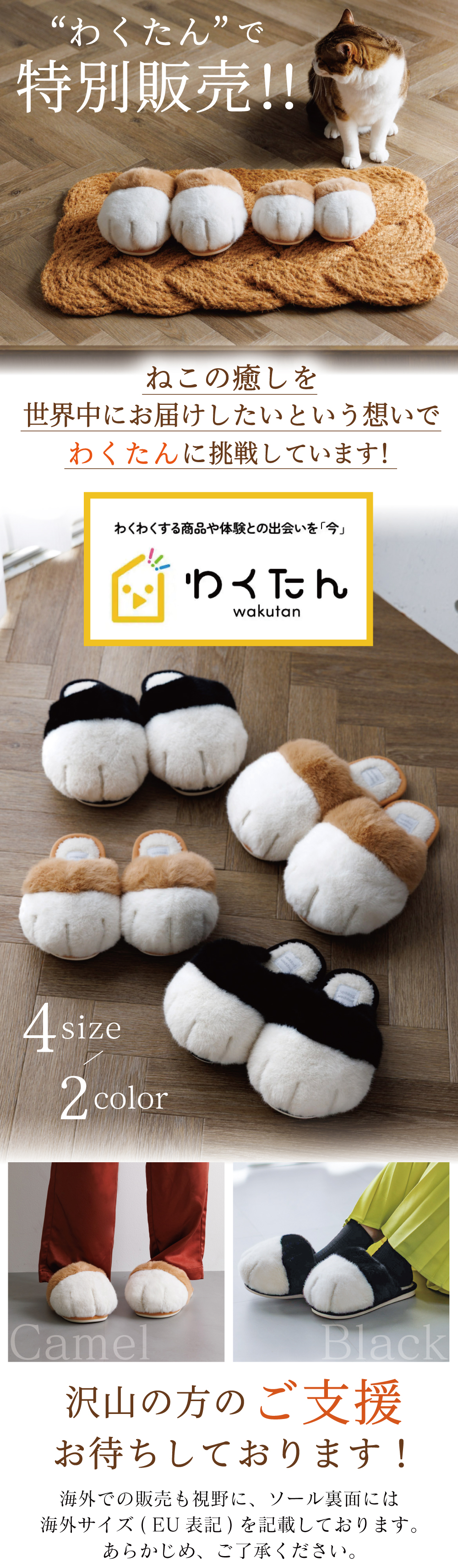 新作『ねこの手スリッパ〜necotete〜』をわくたんにて特別価格で販売させていただきます!プロジェクト期間59日間だけのお得な期間となっておりますので、是非ご覧いただけますと嬉しいです!