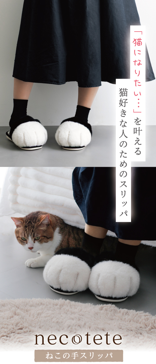 「猫になりたい」を叶える、フワフワむぎゅっと『ねこの手スリッパ』で最高の癒しを!