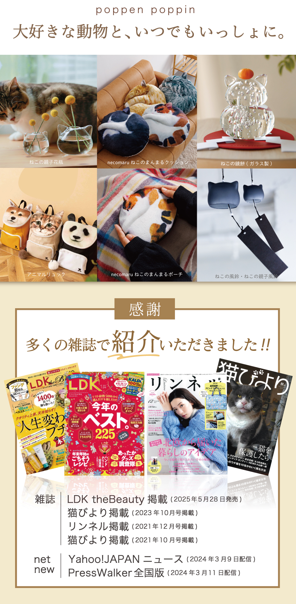 こんにちは。poppen poppin(ポッペンポッピン)の長内と申します。poppen poppinは2019年に動物好きな夫婦が2人で始めたお店です。 “生活にそっと寄り添える雑貨”をテーマに癒しやクスッと笑顔になるような動物モチーフの商品を開発しています。