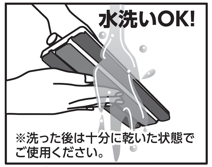 ・ワイパー本体の軽い汚れは水または中性洗剤を含ませた柔らかい布で拭き取ってください。ワイパー本体の汚れがひどい場合は水で丸洗いしてください。水で丸洗いした後は布でブラシ面と本体の水気をふき取り、風通しのよい日陰で完全に乾燥させてからご使用ください。
