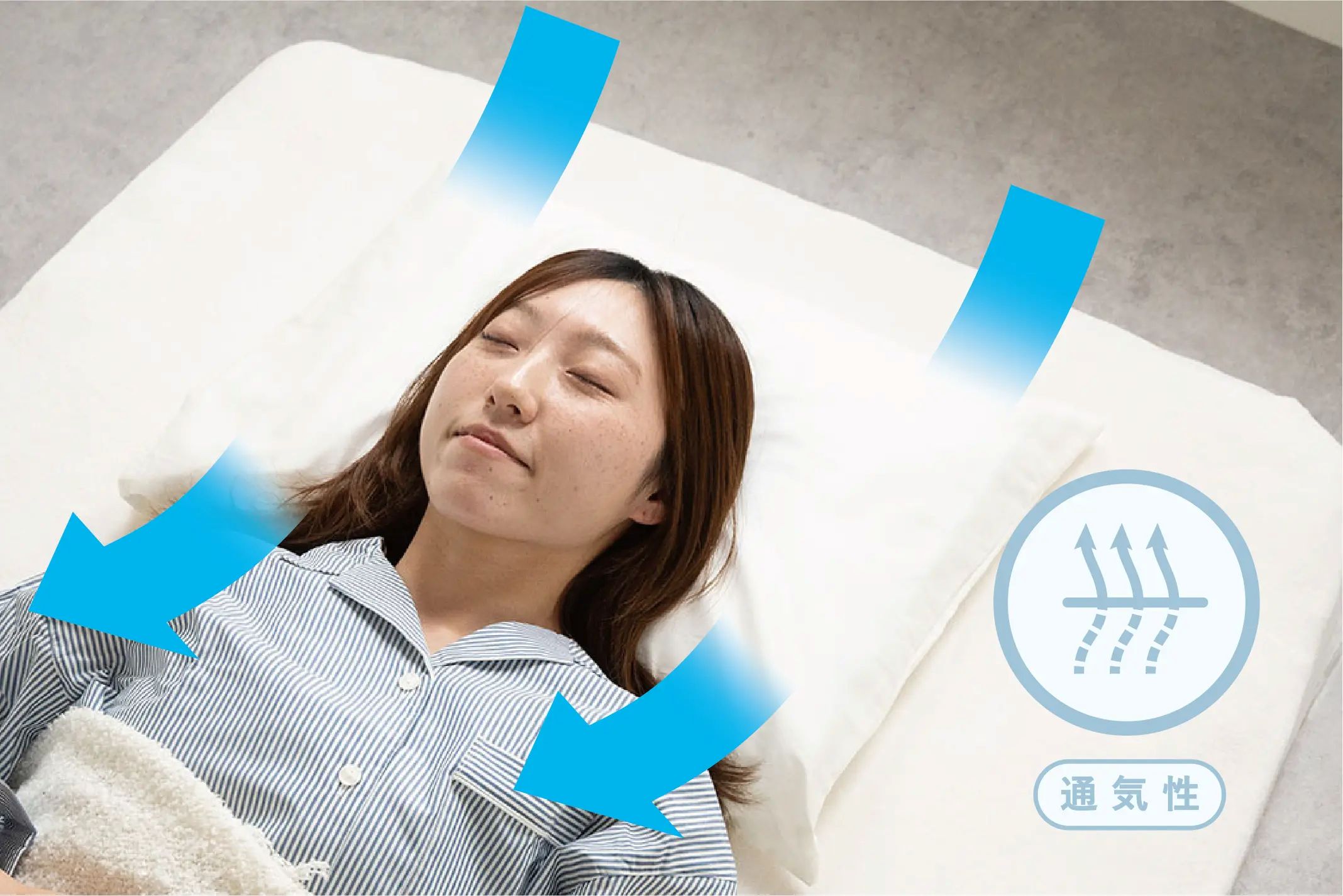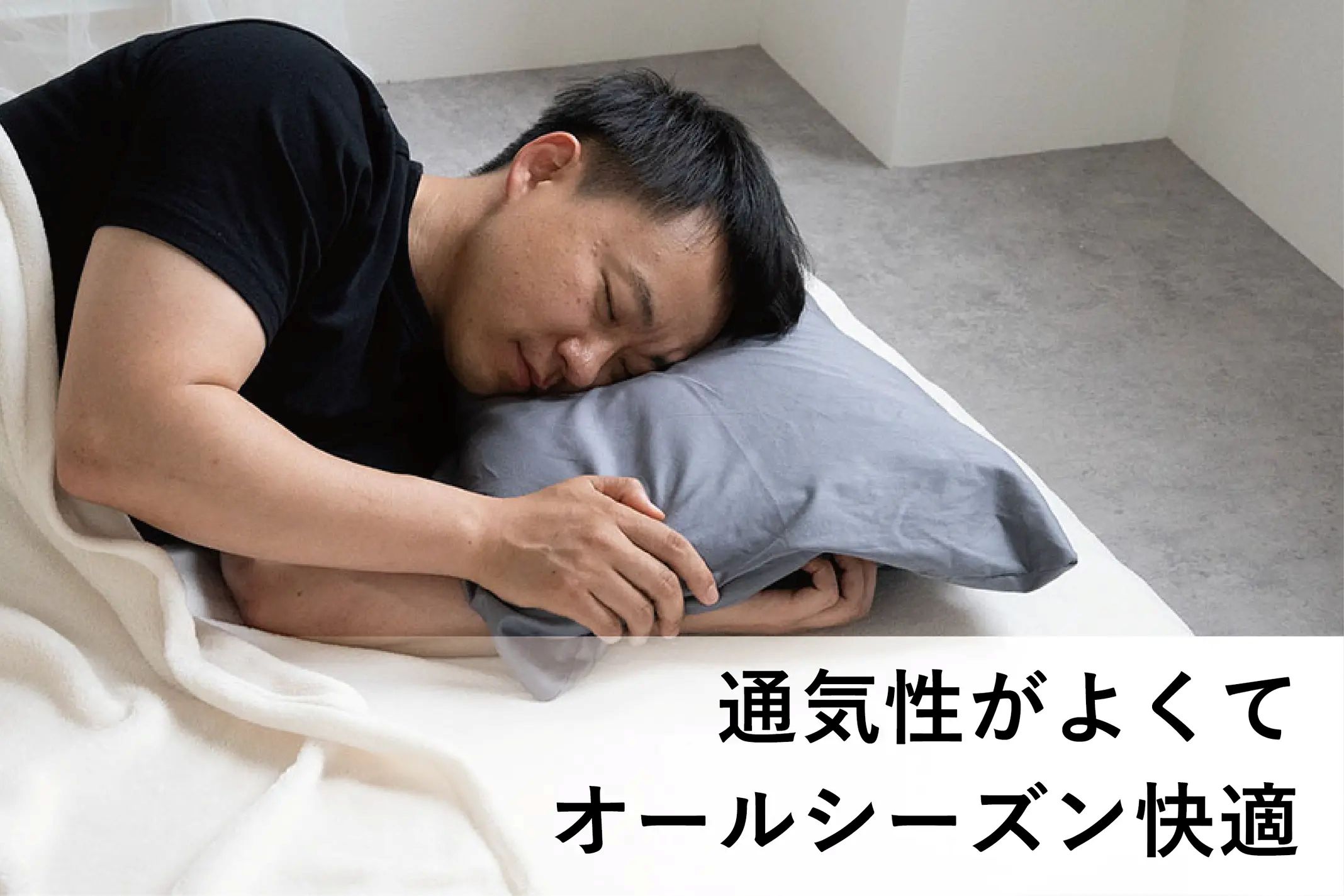 熱や湿気がこもりにくく、汗ばむ季節でも快適な寝心地をキープします。夏はもちろん、オールシーズンおすすめです。