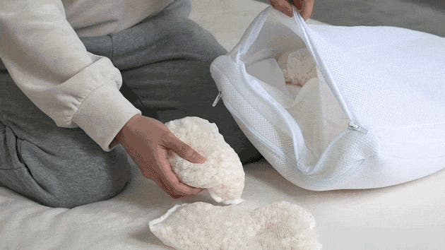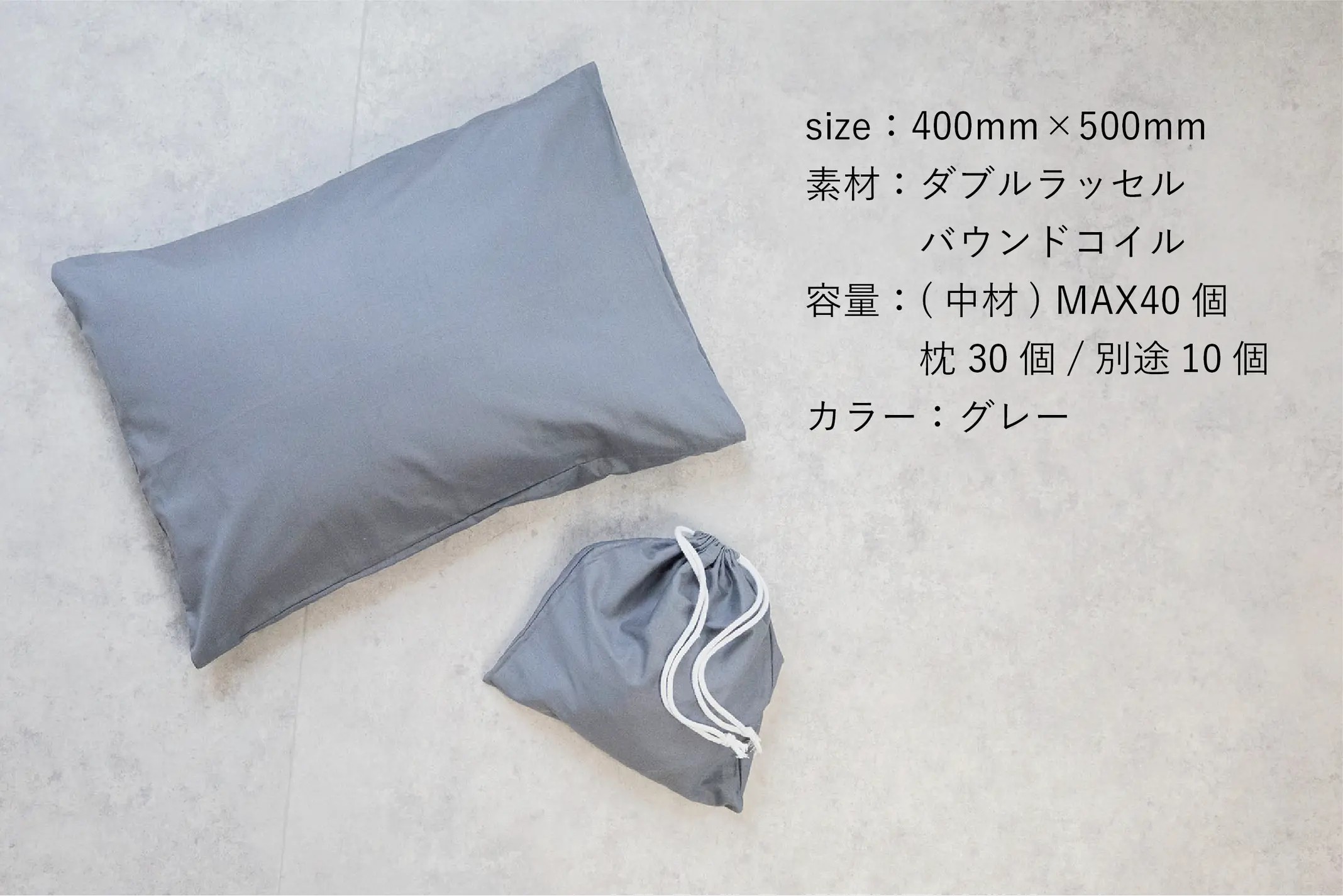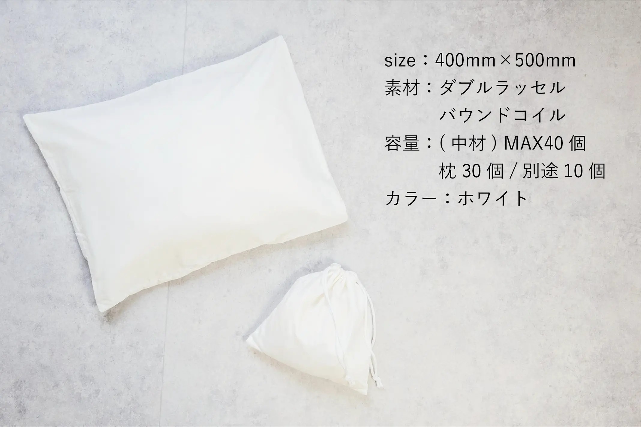 特許取得素材「バウンドコイル」を使用したふわふわ新感覚枕。小袋で小分けしている事で自分に合った高さへ楽々調整