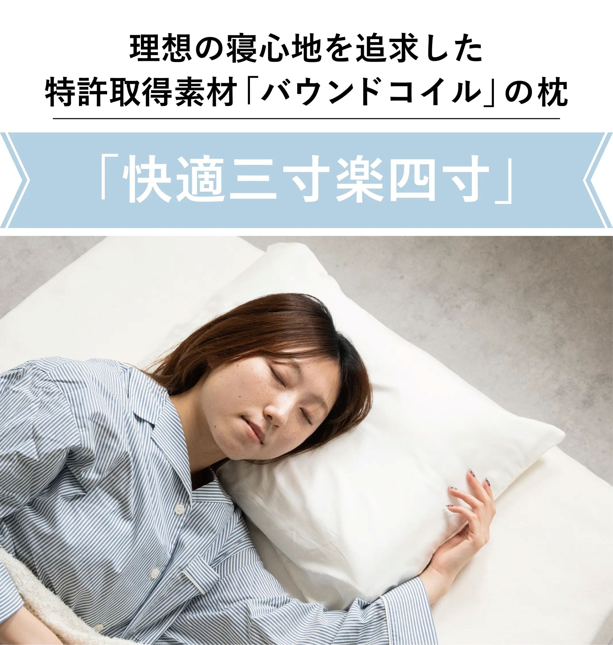 「快眠を皆さんに届けたい。」そんな想いから生まれた、製造のプロが作るこだわりの枕「快適三寸楽四寸」です。