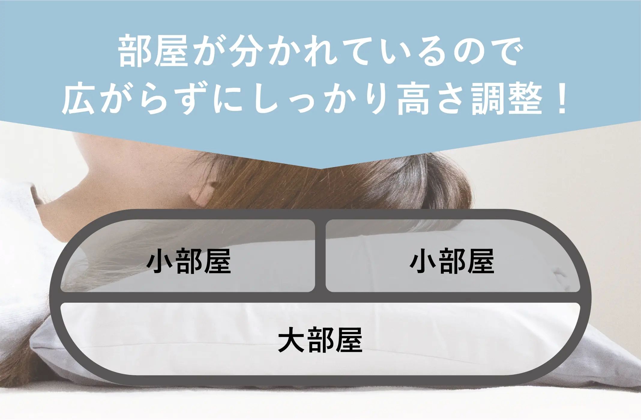 入れるところも3部屋に分かれているので中材の広がりが抑えられ、ちゃんと求めている好みの高さで調整することができます。