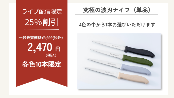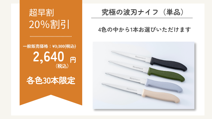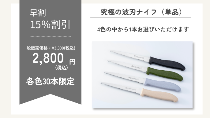 波刃は通常の直刃よりも摩耗しにくい特性があり、切れ味が長持ちします。