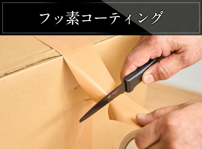 フッ素コーティングの最大の特徴は、切断時の刃にベタつきが付きにくい点です。