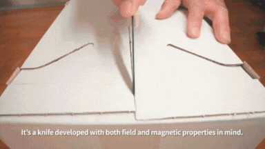 例えば、ダンボール、ロープ、布地など固くて厚い素材を簡単に切ることができます。