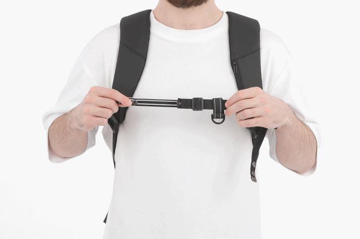 Fidlock社製バックルを採用。リュックのズレ防止!動いてもズレにくく、リュックを安定。