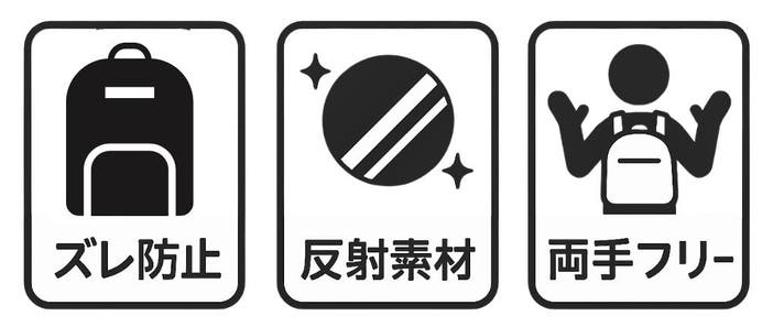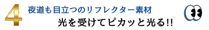 ※ 本製品に使用しているリフレクター素材は、自発光するものではなく、外部光(車のライト等)を反射することで視認性を高める素材です。