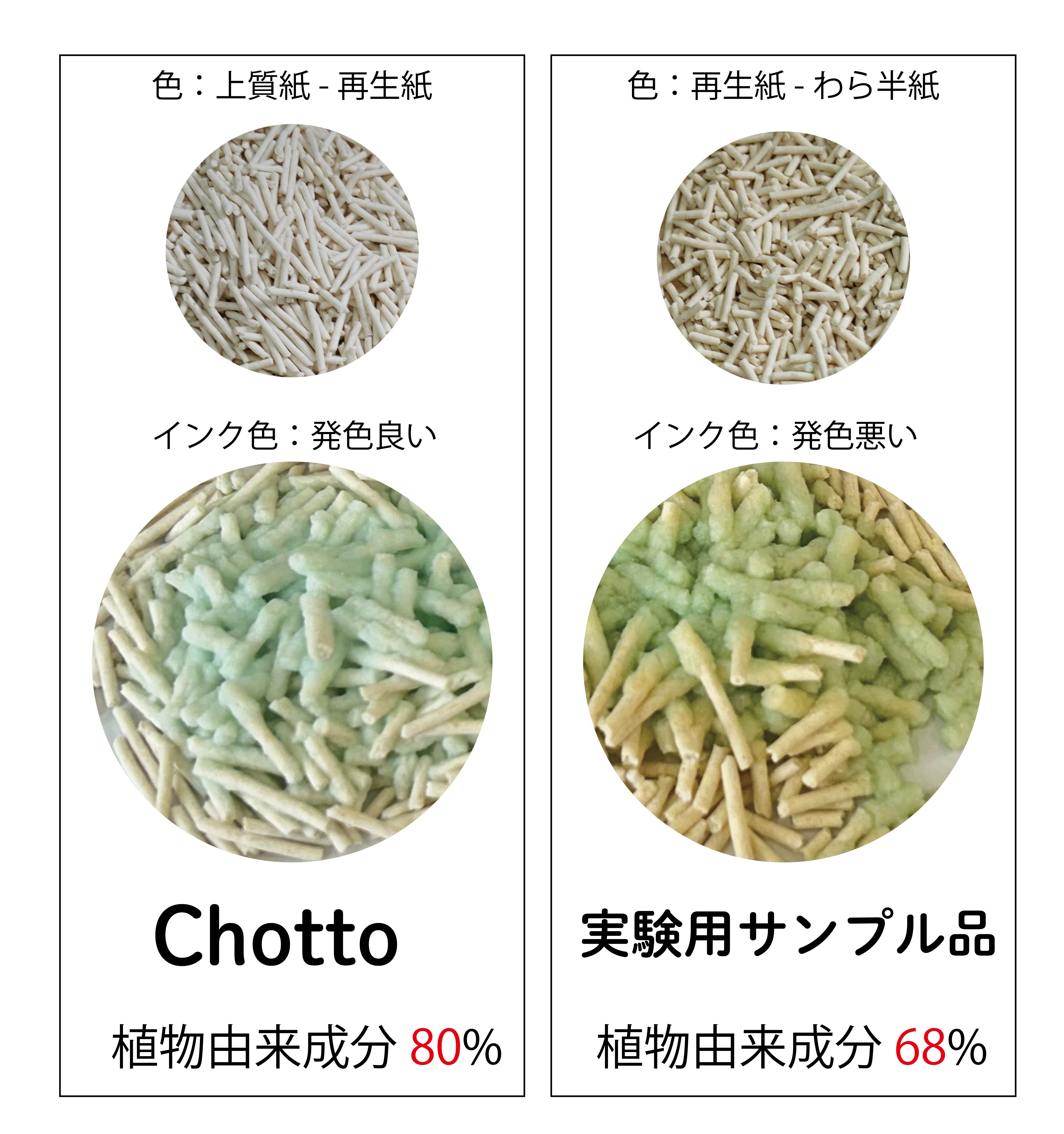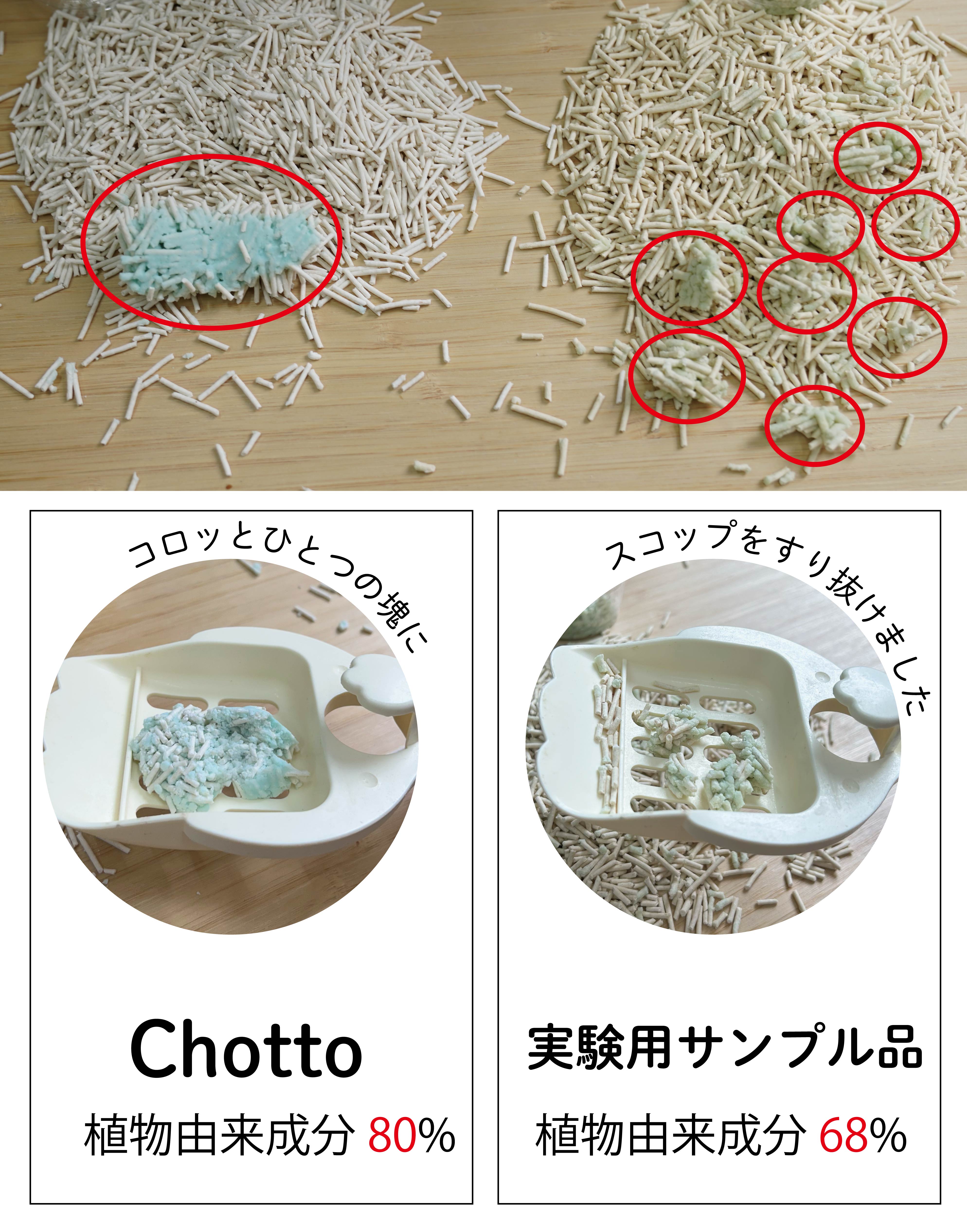 “ちょっと”で驚く吸収力。猫にも地球にもやさしい植物性猫砂『Chotto』