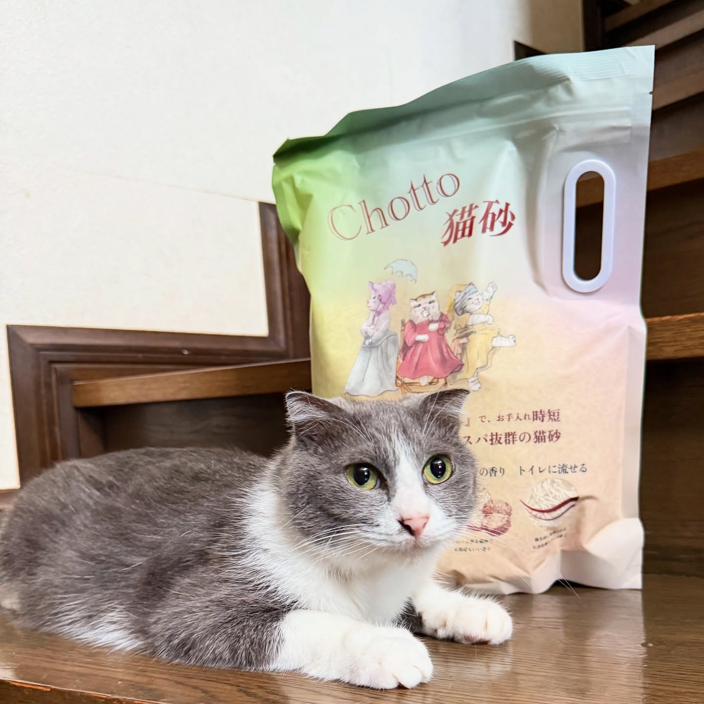 植物由来の原材料を使用し、自然の力を活かして少ない量でも高い吸水性と凝固性を実現しました。猫ちゃんとの生活とトイレの悩みは永遠のテーマです。「ちょっと」の量で、猫にも飼い主にも、そして地球にも「ちょっと嬉しい」を届けたいという思いを込めています。