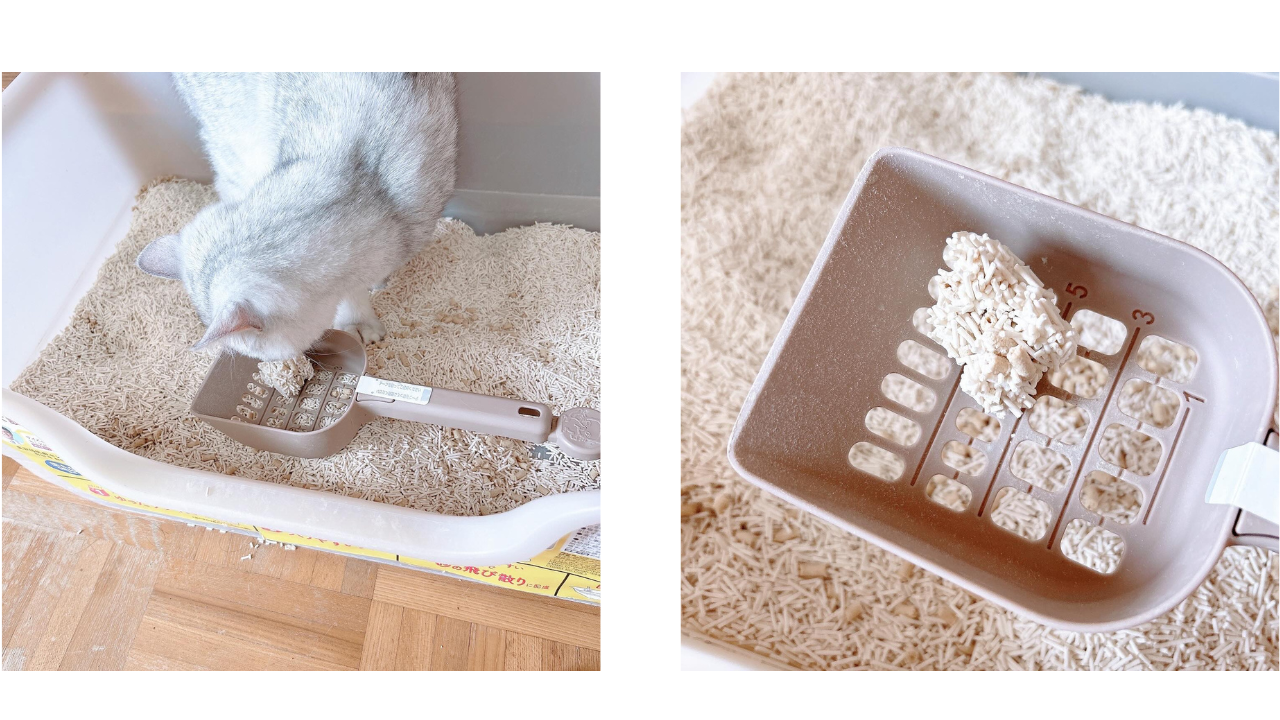 ②おしっこを吸収して猫砂が固まった後、排泄物と固まった部分をスコップなどで取り除きます。