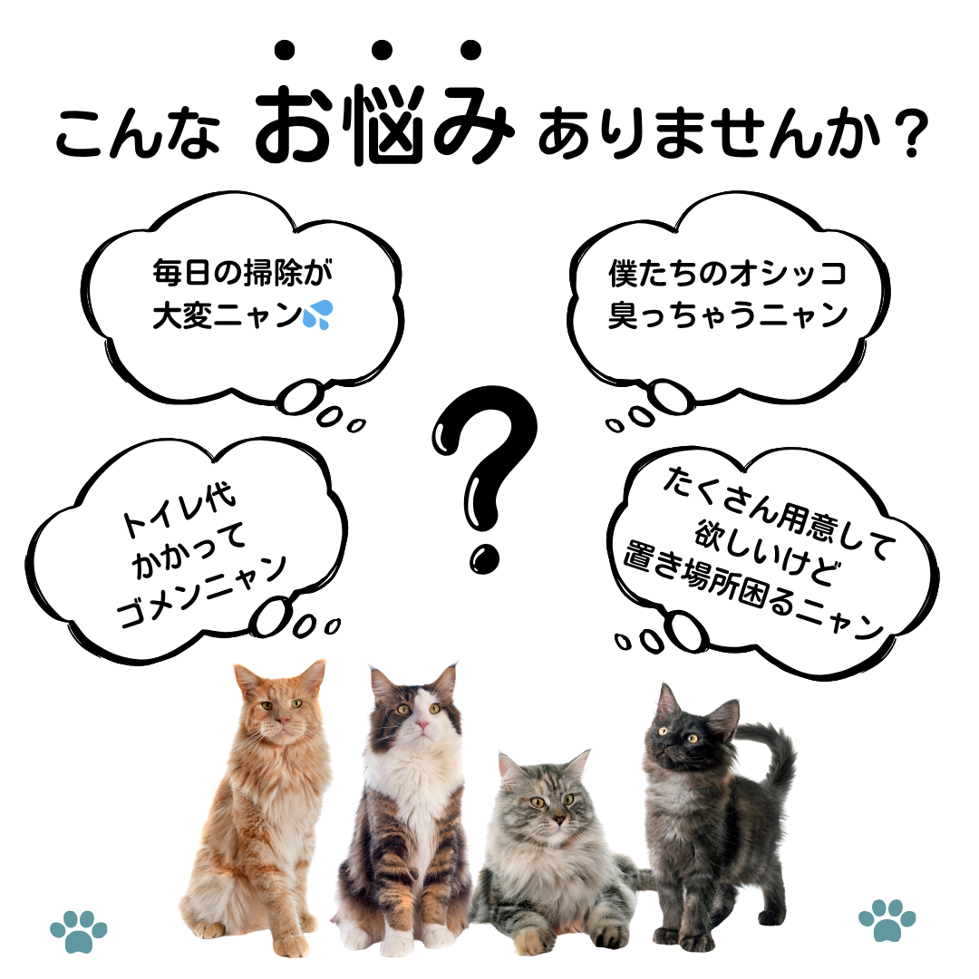 この事象に影響するのは、『猫砂の使用量』と『臭い』と『掃除のしやすさ』です。