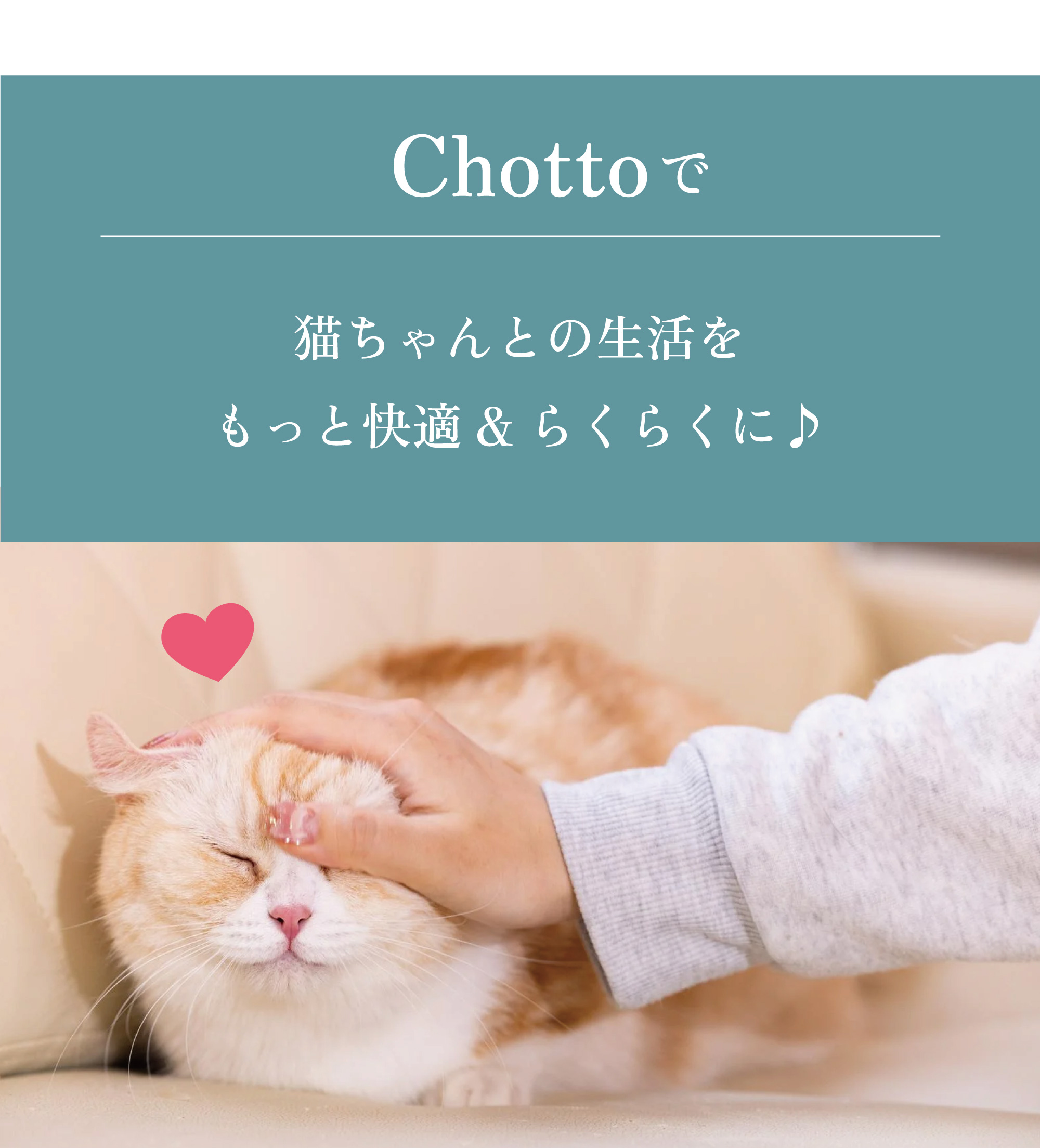 少ない量で驚く吸収力と防臭力。環境にもやさしい、植物性素材の高機能猫砂『Chotto』。