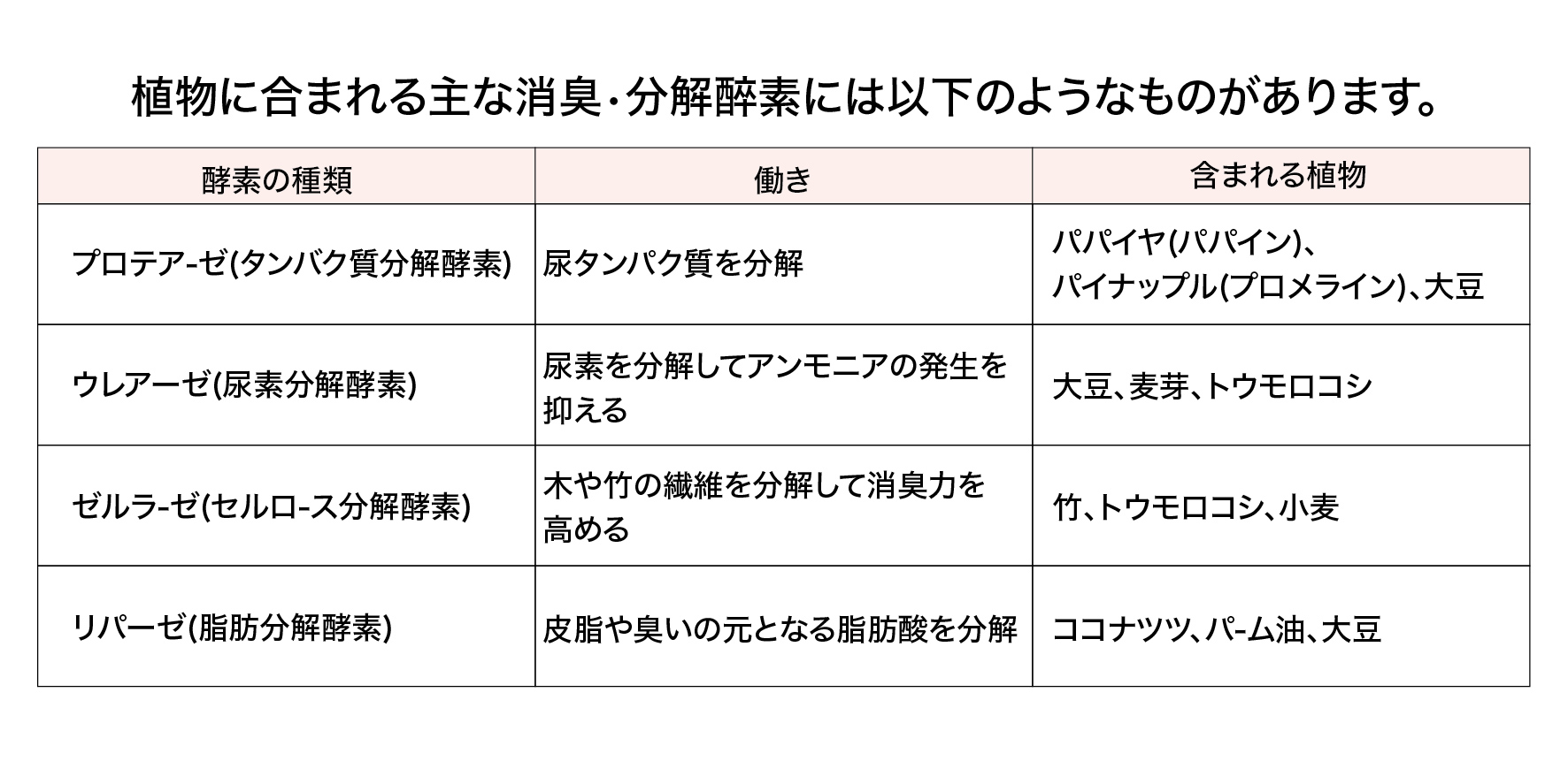 これは、尿に含まれる尿素が細菌によって分解されることで発生するアンモニアの臭いです。とうもろこしや豆など植物由来の素材は、多孔質で水分を素早く吸収する性質。