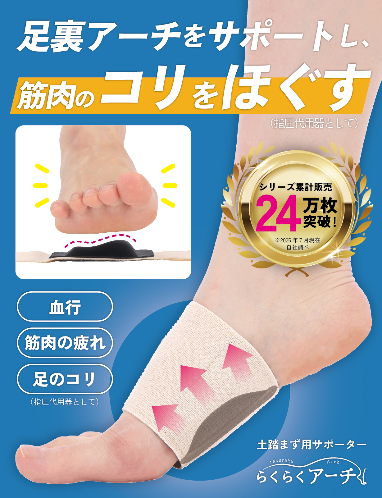 整骨院でも使われているアーチパッドがわくたんに初登場!プロが選ぶクオリティのサポーターをお気軽にお試しいただけます。