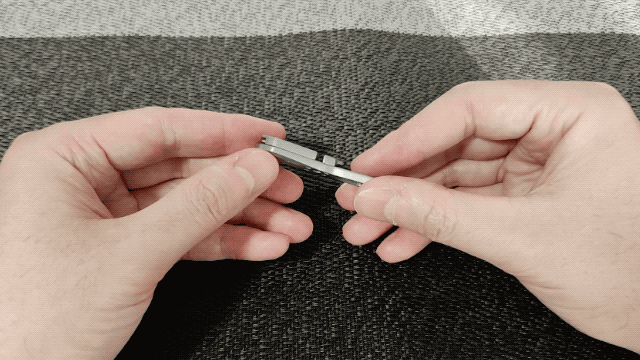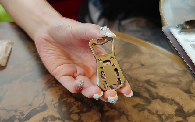 そこで、信頼できる製造メーカーと連携し、試作と改良を重ねました。素材には、軽量で強靭、そして錆びにくいチタンを採用。キーホルダーに付けていつも一緒に持ち歩けるサイズにこだわり、先端部は丸みを持たせた加工で手触りよく仕上げています。財布の中に入れても他の持ち物を傷つけにくい設計です。