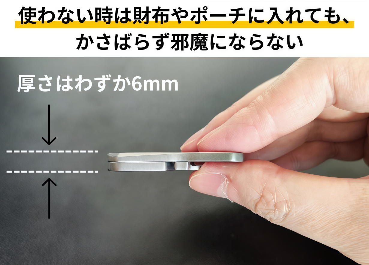 日常の持ち運びでポケットやバッグの中に入れても、他の持ち物を傷つけにくいのも特長です。