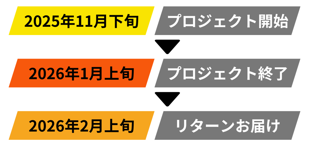 ・使用部材の供給状況、製造工程上の都合等によりリターンの発送時期が遅れる場合がございます。