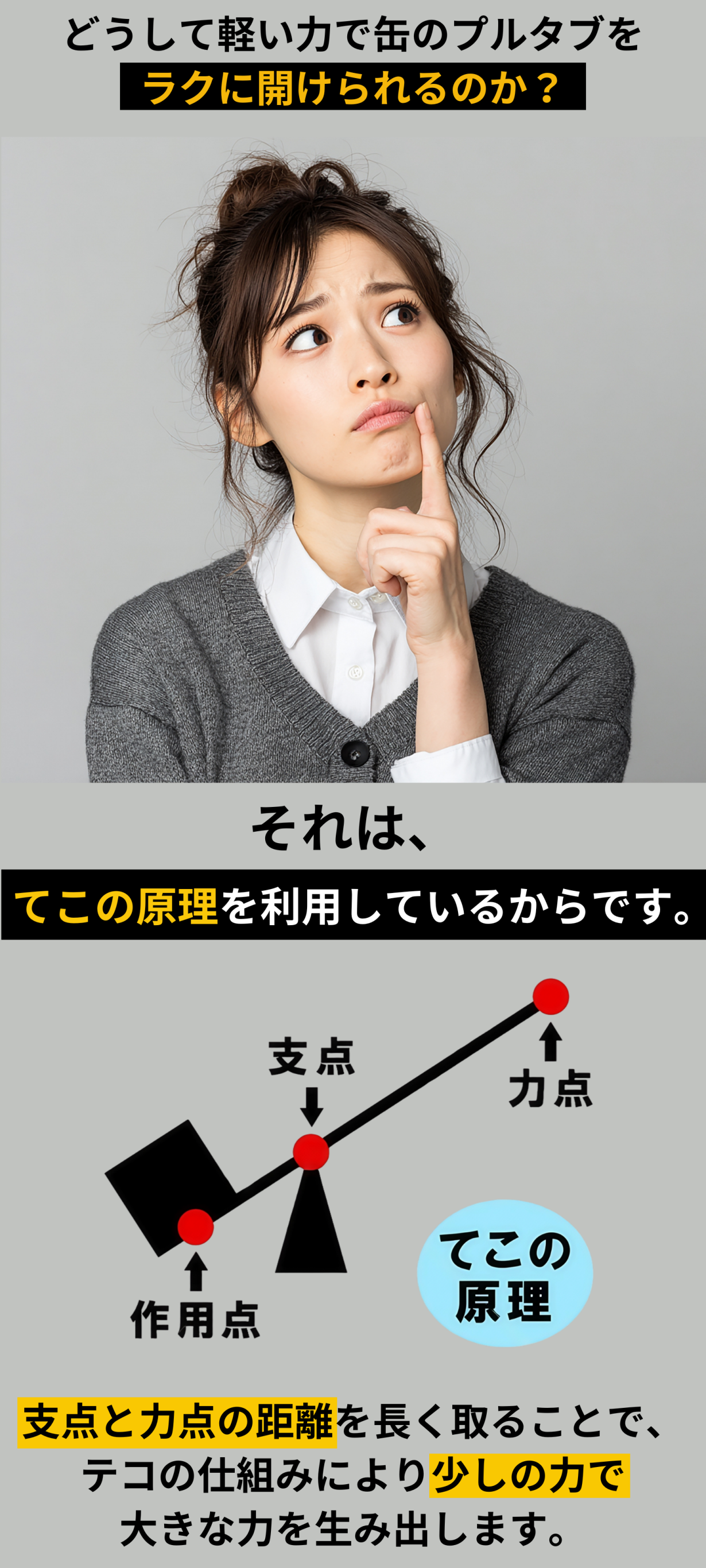 Q:なぜこの商品が軽い力で缶が開けられますか?