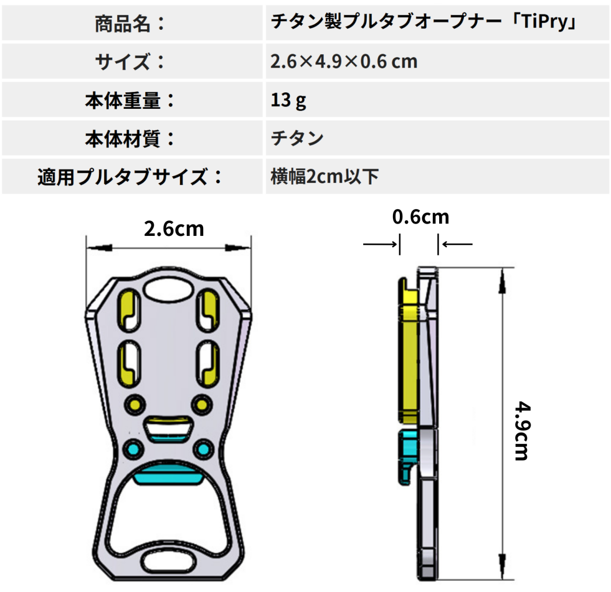チタン製プルタブオープナー「TiPry」は使いやすさを重視し、細部にまでこだわりが詰まっています。